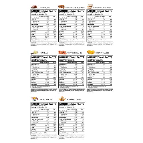 Chocolate, Vanilla, Cookies & Cream, Strawberry, Banana, and other popular options.