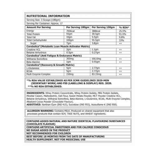 With its premium-quality ingredients, balanced macronutrient profile, and delicious taste, Corebolics Gainz is the ultimate lean mass gainer for those looking to build muscle effectively without excess fat. Gain clean, solid muscle with every scoop!