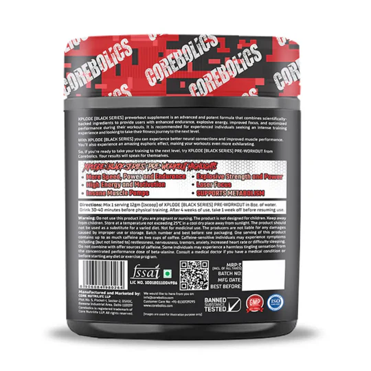 Corebolics Xplode (Black Series) Pre-Workout is an exceptional product for anyone looking to take their training to the next level. With its blend of high-performance ingredients, it enhances every aspect of your workout, from energy and endurance to strength and focus. Whether you’re a bodybuilder, athlete, or fitness enthusiast, Xplode Pre-Workout delivers the power and performance boost you need to achieve your goals.
