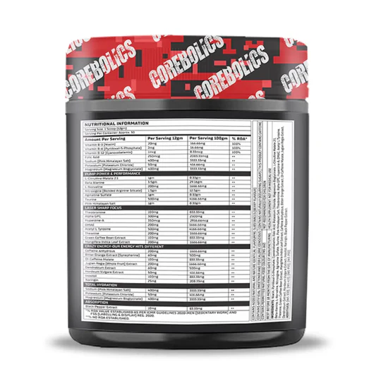 Corebolics Xplode works by combining a unique blend of stimulants, performance enhancers, and nootropic ingredients to create a holistic pre-workout experience. The stimulants, like caffeine and tyrosine, heighten mental focus, motivation, and energy, ensuring you’re fully engaged in your training. The inclusion of nitric oxide boosters like citrulline malate and AAKG increases blood flow to the muscles, enhancing pumps and nutrient delivery. Strength and power are improved through creatine and betaine, which increase ATP production, the energy currency of the muscles.