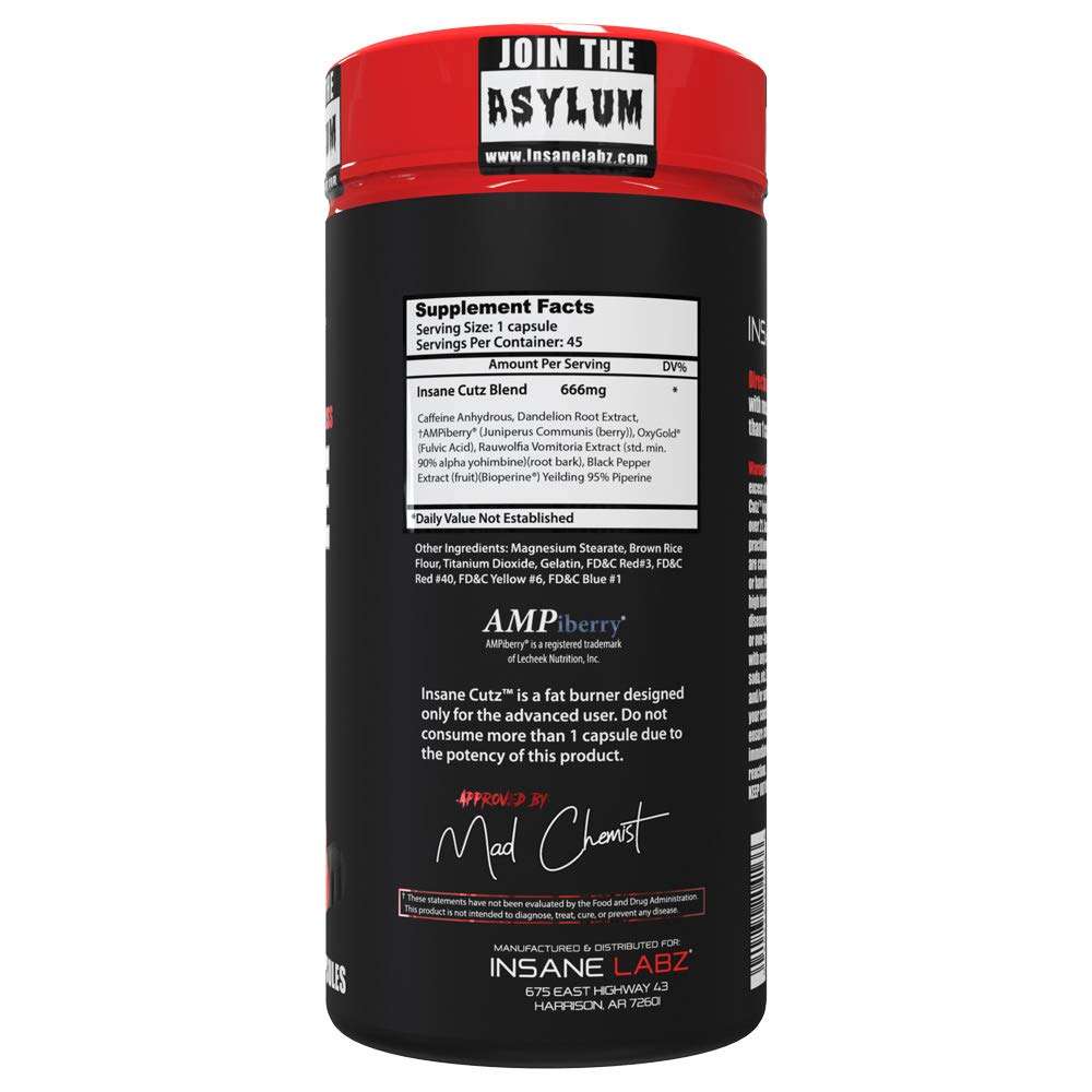 - Fast-Acting Formula: Feel the effects of Insane Cutz within minutes as it rapidly kicks into gear, helping you burn more fat during workouts and throughout the day.